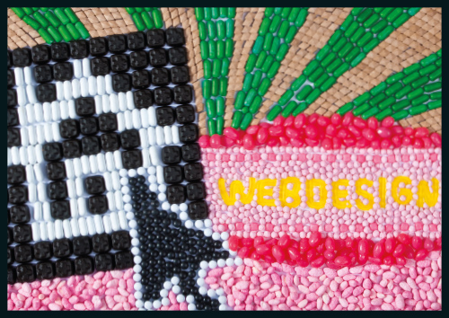 Nu was het echter de beurt aan onze stagiaire. Hoe laten we op een ludieke eigen manier weten dat Noord-Scharwoude sinds een jaar of twee een goed reclamebureau rijker is? Met een grote snoepbak binnen handbereik, kwam onze stagiaire al snel tot het concept ‘Snoep’. Wij zagen het snoepparadijs al voor ons! En dat werd het ook! Ze maakte ware kunstwerken van echt snoep.